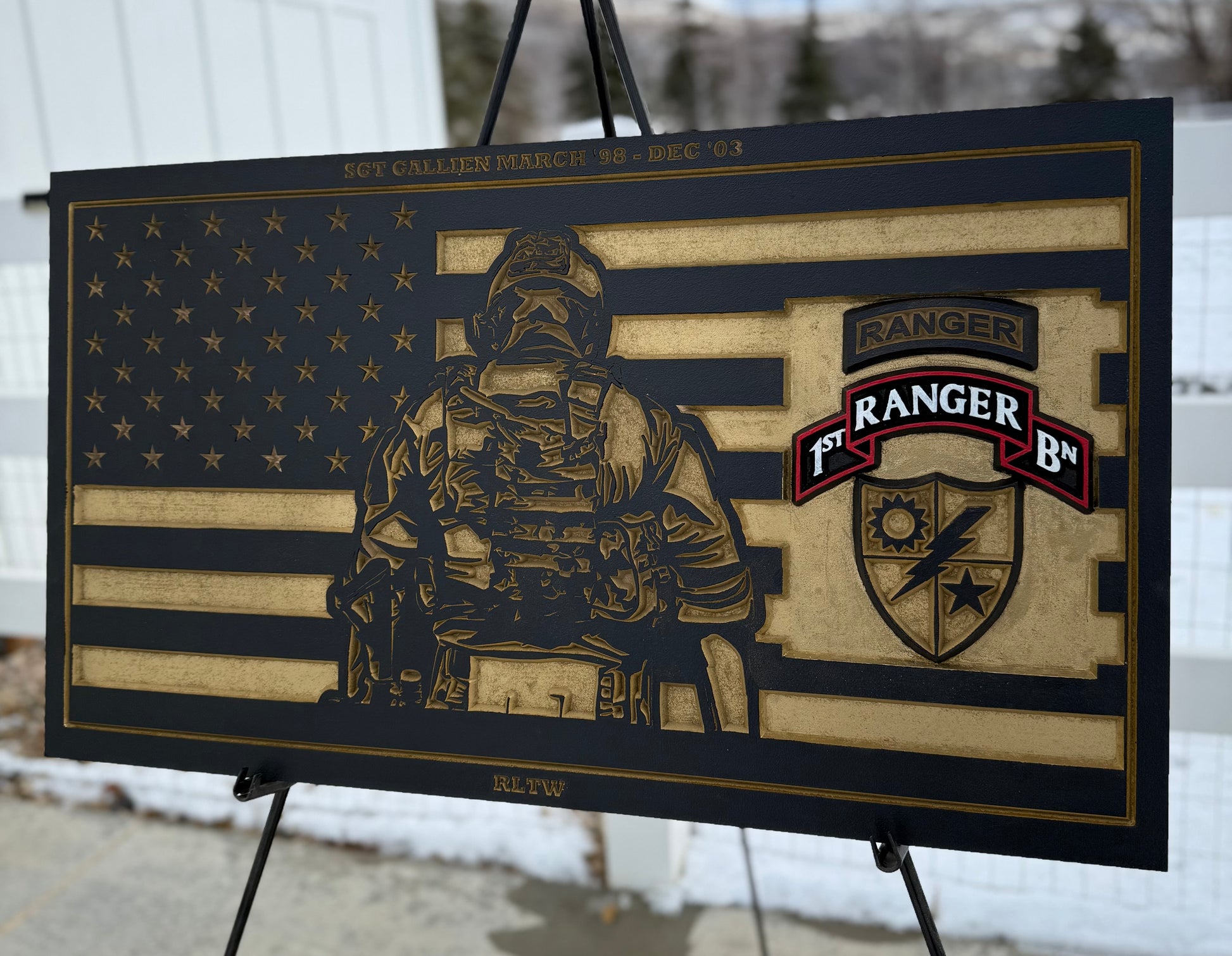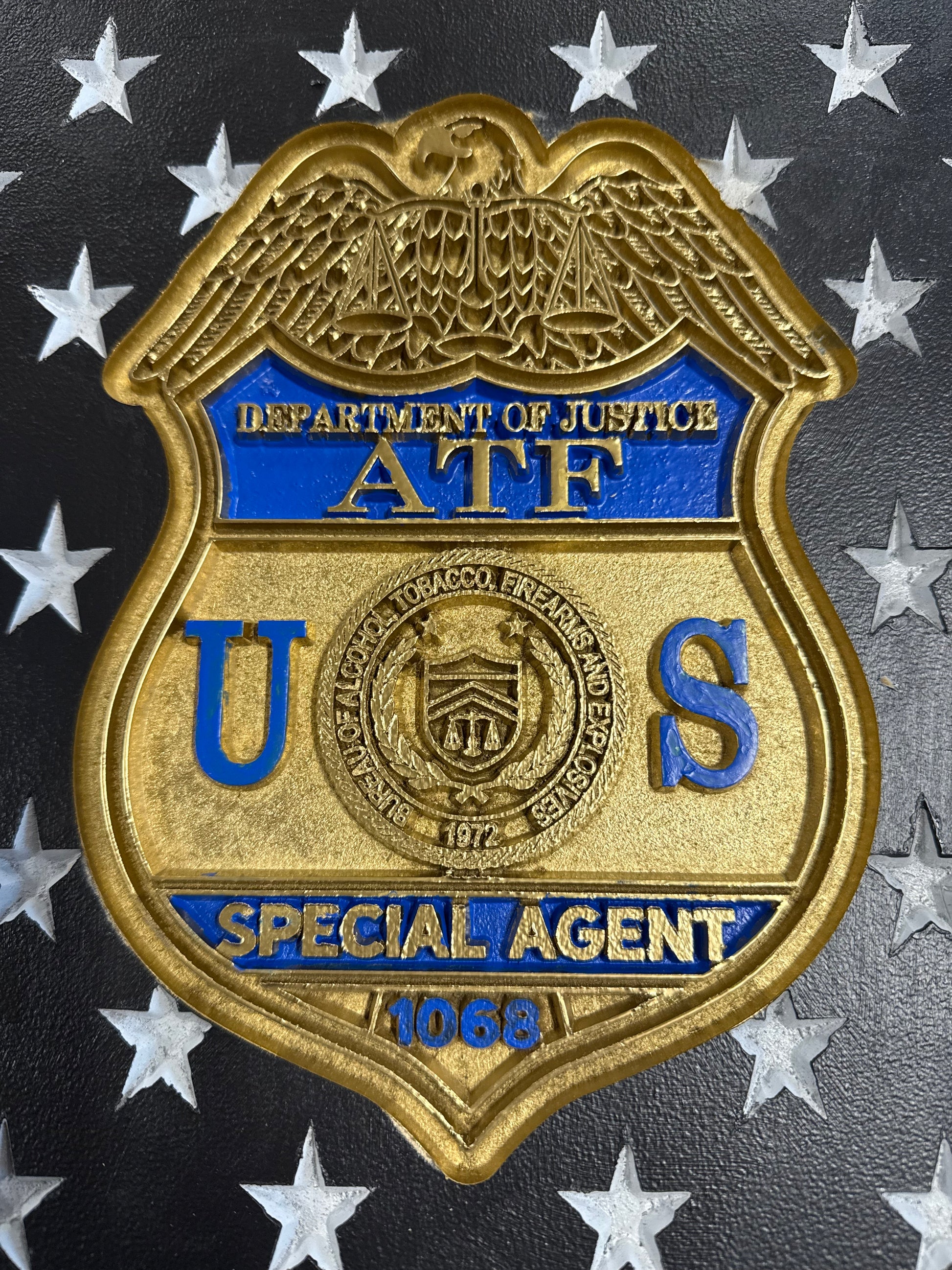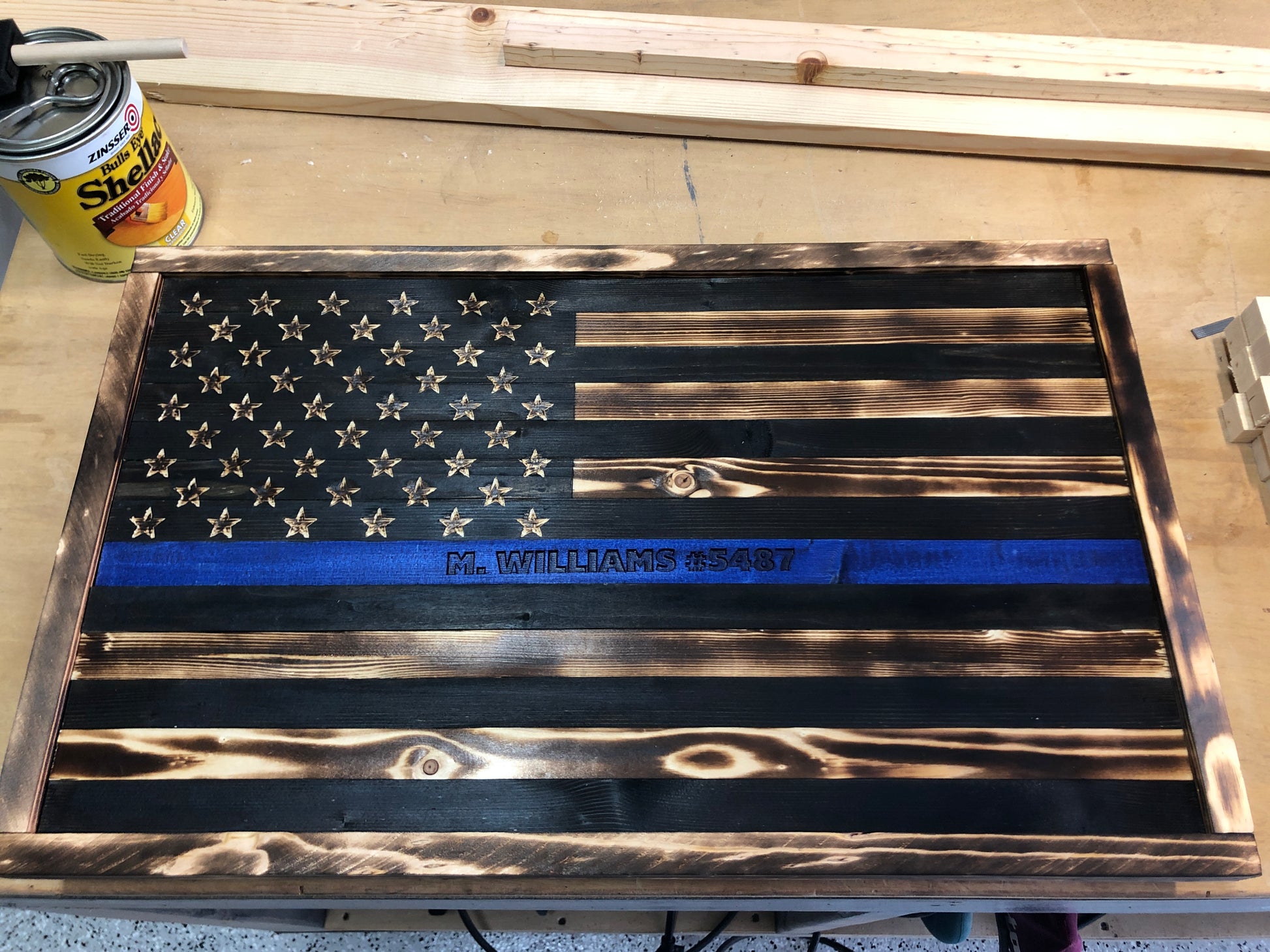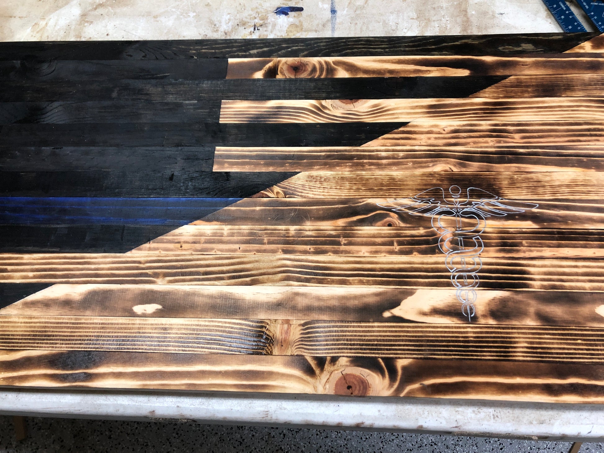 Elevate your space with our custom-made Wall Art Flags, featuring designs to honor our brave First Responders, Veterans, and Patriots. Made with quality materials and expert craftsmanship, these flags add a personal touch to any room while showcasing your support for our heroes. Order yours today. Sizes vary based upon design but are approximately 36” X 24” X 1”. Message me for custom design.